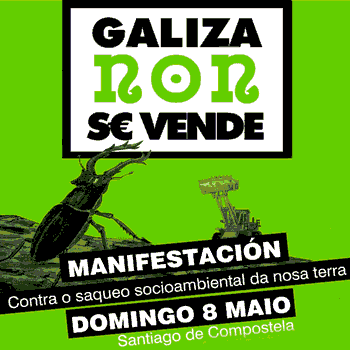A rede de colectivos cidadáns Galiza Non Se Vende convídavos a participar na manifestación que se celebrará o próximo 8 de maio en Compostela, as 12 horas saíndo da Alameda. Haberá concerto as 17 horas na Sala Nasa con Berrobambán, Guintervan e GalegoZ