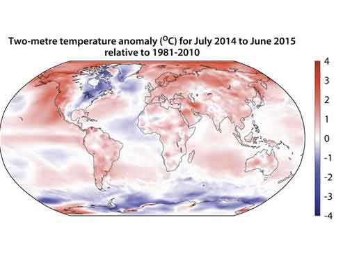 Xa o primeiro semestre foi o máis caloroso dende que hai rexistros globais de clima (1880). A temperatura global da terra e dos océanos foi case un grao (0,85ºC) superior á media do século XX. A temperatura global da Terra foi 1,34ºC superior e a dos mares un 0,67ºC. Ademais, todos os océanos experimentaron un aumento.